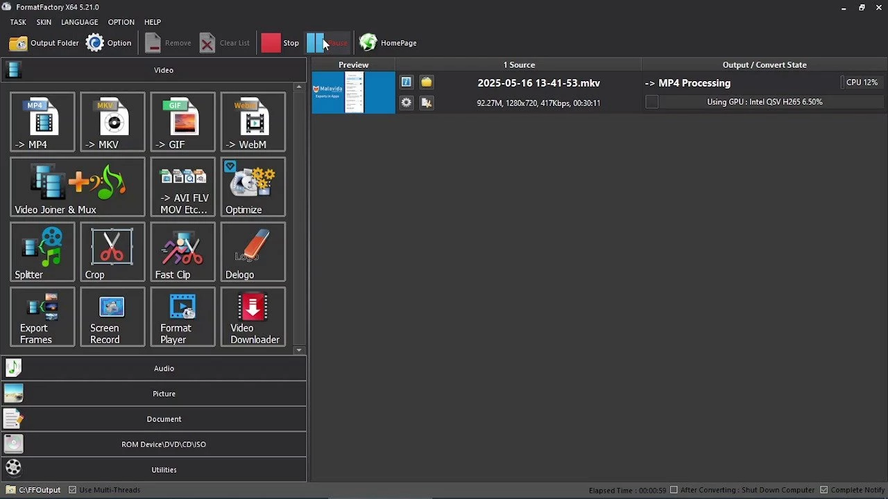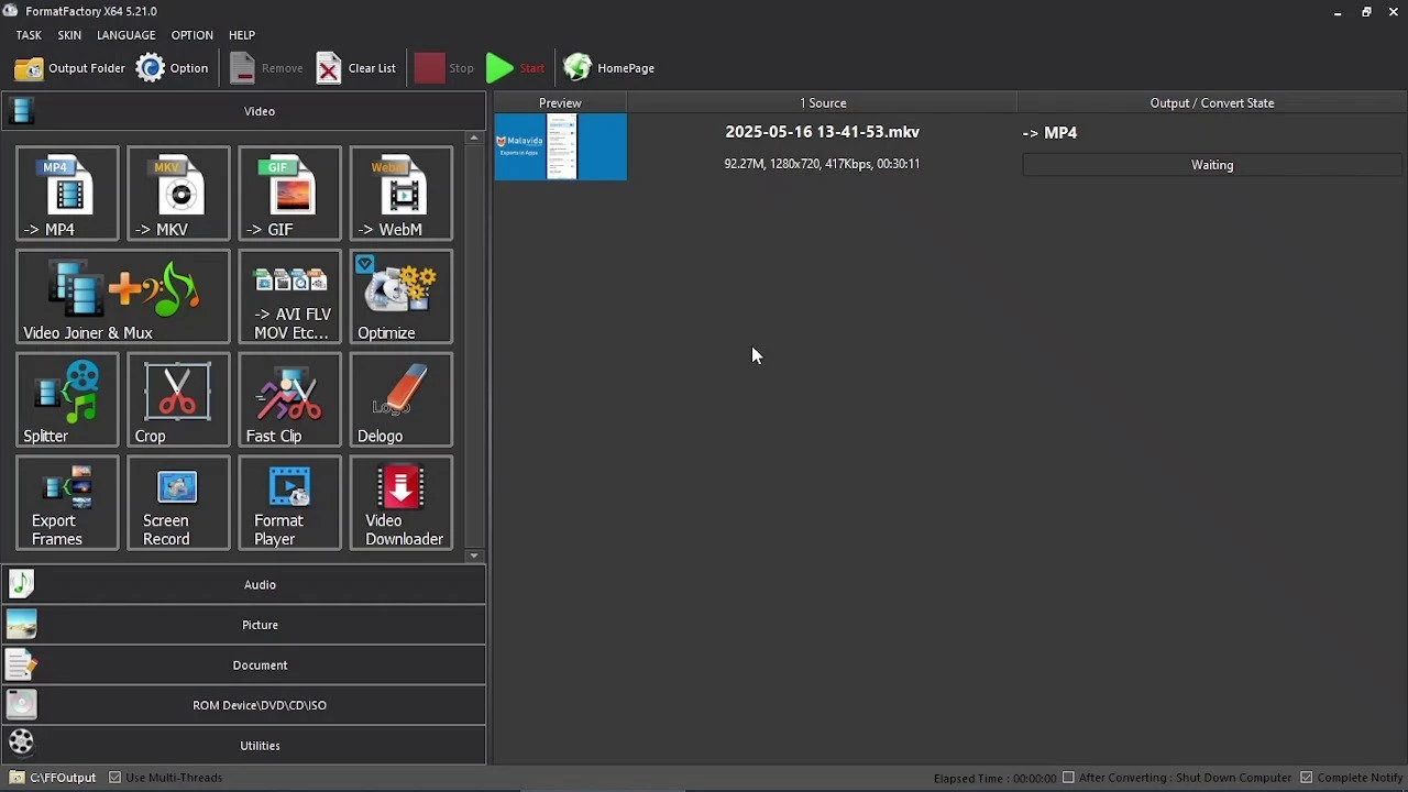 앞서 언급했듯이, Format Factory는다양한 유형의 포맷을 필요한 포맷으로 완벽하게 변환하는 프로세스를 제공하며, 이를 다양한 운영 체제와 호환되도록 합니다. 여기서 몇 가지를 언급했습니다.